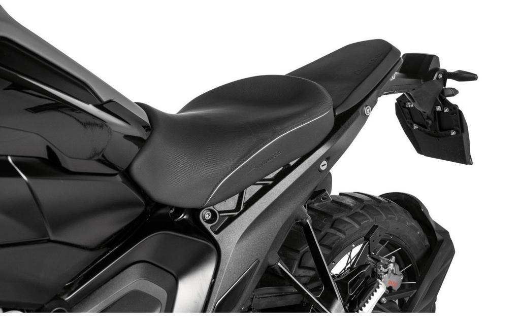 Podobnie jak siedzenie OEM, można go zamontować i zdemontować w kilka sekund i bezpiecznie zablokować za pomocą standardowego zamka siedzenia BMW. Płaska, pomalowana na czarno powierzchnia dodaje zarówno stylu, jak i funkcjonalności - idealna dla samotnych jeźdźców, którzy cenią sobie minimalistyczny wygląd.