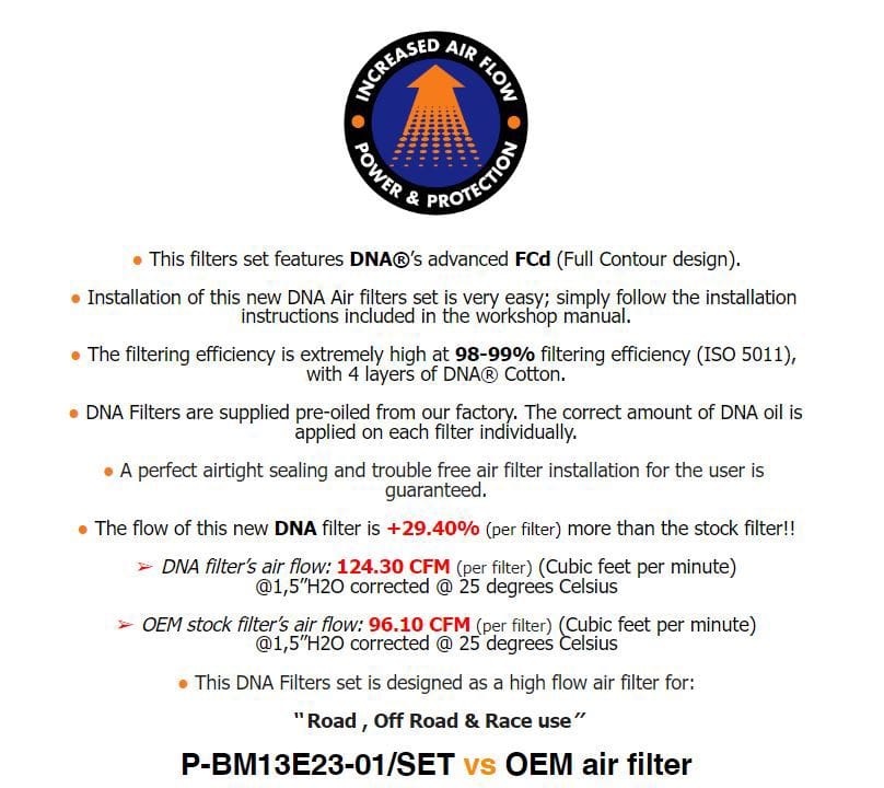 - Typ filtra: wysokowydajny filtr powietrza od DNA Filters